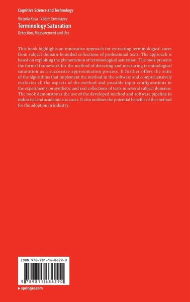 This book highlights an innovative approach for extracting terminological cores from subject domain-bounded collections of professional texts. The approach is based on exploiting the phenomenon of terminological saturation. The book presents the formal framework for the method of detecting and measuring terminological saturation as a successive approximation process. It further offers the suite of the algorithms that implement the method in the software and comprehensively evaluates all the aspects of the method and possible input configurations in the experiments on synthetic and real collections of texts in several subject domains. The book demonstrates the use of the developed method and software pipeline in industrial and academic use cases. It also outlines the potential benefits of the method for the adoption in industry.