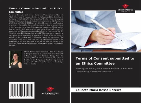 The aim of this study was to analyse the Terms of Free and Informed Consent (TCLE) of the research projects submitted to the Research Ethics Committee of the Faculty of Health (CEP/FS) of the University of Brasília between January and October 2013, in order to check whether the requirements of CNS Resolutions 196/96 (until July/13) and 466/12 (July to October/13) were being met.This study is justified by the need for the scientific community to draw up consent forms in clear language that is accessible to potential research participants so that they can exercise their autonomy in a truly free and informed manner. For autonomy to be fully achieved, this must be reflected in the drafting of the ICF. With this in mind, 190 ICFs submitted to the CEP/FS were analysed according to four categories of parameters: 1) structure; 2) details of the research; 3) analysis of the wording and 4) information about the researcher. The comparative result shows that there were no significant differences in the preparation of the ICFs submitted to the CEP/FS with the change in the Resolution. This analysis showed that the ICFs analysed partially complied with the rules.
