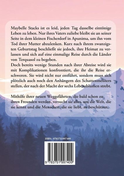 Maybelle Stacks ist es leid, jeden Tag dasselbe eintönige Leben zu leben. Nur ihres Vaters zuliebe bleibt sie an seiner Seite in dem kleinen Fischerdorf in Apunima, um ihn vom Tod ihrer Mutter abzulenken. Kurz nach ihrem zwanzigsten Geburtstag beschließt sie jedoch, ihre Heimat zu verlassen und sich auf eine einmalige Reise durch die Länder von Terquasol zu begeben. Doch bereits wenige Stunden nach ihrer Abreise wird sie mit Komplikationen konfrontiert, die ihr die Reise erschweren. Sie wird nicht nur entführt, sondern muss sich plötzlich auch noch den Anhängern des Schattenmeisters stellen, der nach der Macht der sechs Lebensblumen strebt. Mithilfe ihrer neuen Weggefährten, die bald schon zu ihren Freunden werden, versucht sie alles, um die Welt, die sie kennt und die Menschen, die sie liebt, zu beschützen.