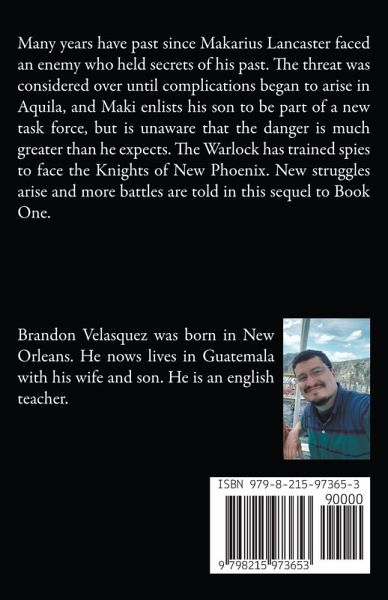 Many years have past since Makarius Lancaster faced an enemy who held secrets of his past. The threat was considered over until complications began to arise in Aquila, and Maki enlists his son to be part of a new task force, but is unaware that the danger is much greater than he expects. The Warlock has trained spies to face the Knights of New Phoenix. New struggles arise and more battles are told in this sequel to Book One.