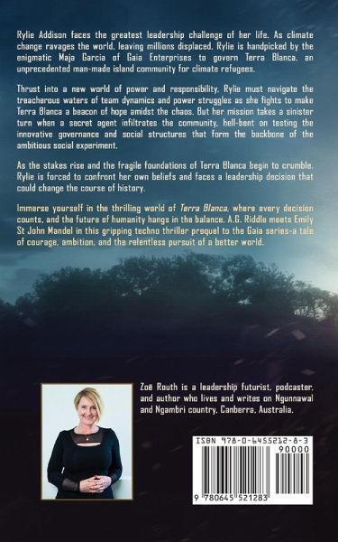 Rylie Addison faces the greatest leadership challenge of her life. As climate change ravages the world, leaving millions displaced, Rylie is handpicked by the enigmatic Maja Garcia of Gaia Enterprises to govern Terra Blanca, an unprecedented man-made island community for climate refugees. Thrust into a new world of power and responsibility, Rylie must navigate the treacherous waters of team dynamics and power struggles as she fights to make Terra Blanca a beacon of hope amidst the chaos. But her mission takes a sinister turn when a secret agent infiltrates the community, hell-bent on testing the innovative governance and social structures that form the backbone of the ambitious social experiment. As the stakes rise and the fragile foundations of Terra Blanca begin to crumble, Rylie is forced to confront her own beliefs and faces a leadership decision that could change the course of history. Can she find the strength to make the right choice, or will her actions lead to the downfall of the very people she has vowed to protect? Immerse yourself in the thrilling world of Terra Blanca, where every decision counts, and the future of humanity hangs in the balance. A.G. Riddle meets Emily St John Mandel in this gripping techno thriller prequel to the Gaia series-a tale of courage, ambition, and the relentless pursuit of a better world.