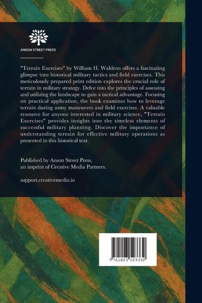 "Terrain Exercises" by William H. Waldron offers a fascinating glimpse into historical military tactics and field exercises. This meticulously prepared print edition explores the crucial role of terrain in military strategy. Delve into the principles of assessing and utilizing the landscape to gain a tactical advantage. Focusing on practical application, the book examines how to leverage terrain during army maneuvers and field exercises. A valuable resource for anyone interested in military science, "Terrain Exercises" provides insights into the timeless elements of successful military planning. Discover the importance of understanding terrain for effective military operations as presented in this historical text. This work has been selected by scholars as being culturally important, and is part of the knowledge base of civilization as we know it. This work is in the public domain in the United States of America, and possibly other nations. Within the United States, you may freely copy and distribute this work, as no entity (individual or corporate) has a copyright on the body of the work. Scholars believe, and we concur, that this work is important enough to be preserved, reproduced, and made generally available to the public. We appreciate your support of the preservation process, and thank you for being an important part of keeping this knowledge alive and relevant.
