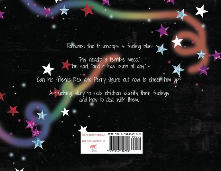 Terrance the triceratops is feeling blue: "My head's a terrible mess," he said, "and it has been all day." Can his friends Rex and Perry figure out how to cheer him up? A touching story to help children identify their feelings and how to deal with them.