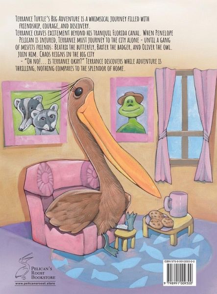 Terrance Turtle's Big Adventure is a tale of friendship and courage. Terrance leaves his canal to help Penelope Pelican, facing city chaos and learning that while adventure excites, there's no place like home.