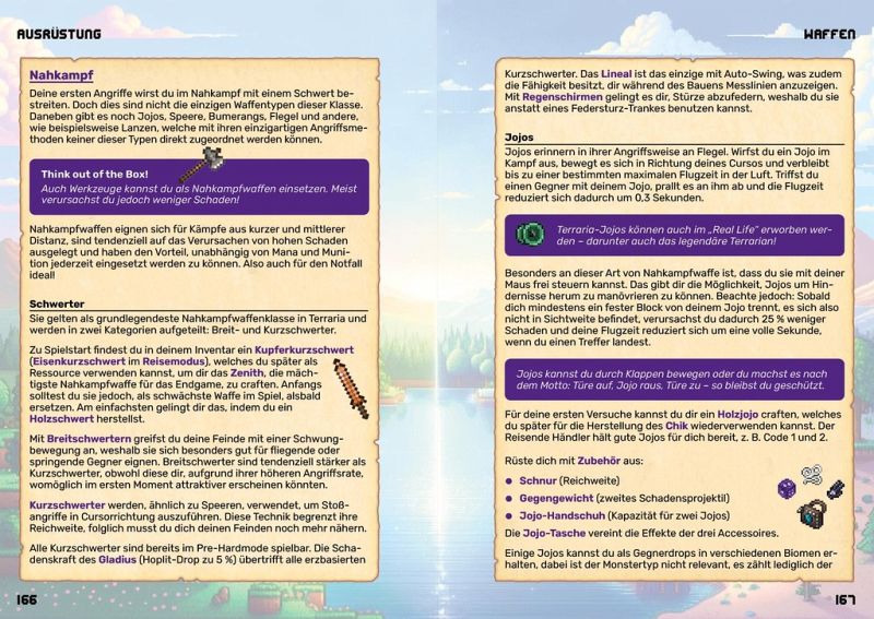 Überblick über die SpielmechanikenDie Welt und ihre BiomeNPCs und wie du sie glücklich machstListe aller Händler und ihrer ArtikelCrafting-Tipps und -TricksÜbersicht der BosseListe aller RüstungenDie optimale Basis bauenEmpfohlene Ausrüstung