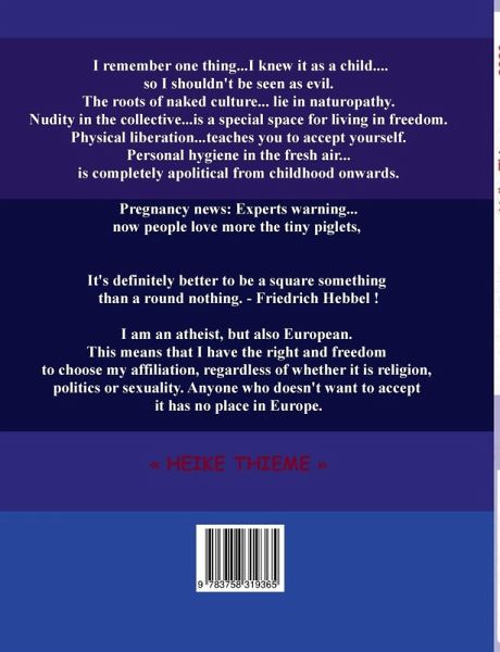I remember one thing. I knew it as a child so I shouldn't be seen as evil. The roots of naked culture lie in naturopathy. Nudity in the collective is a special space for living in freedom. Physical liberation teaches you to accept yourself. Personal hygiene in the fresh air is completely apolitical from childhood onwards.Pregnancy news: Experts warning,now people love more the tiny piglets, It's definitely better to be a square something than a round nothing. - Friedrich Hebbel !