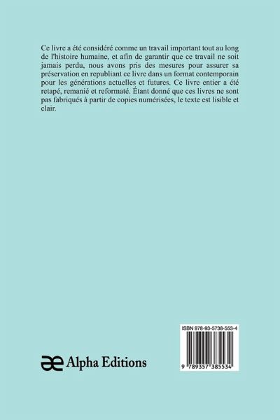 Terres de soleil et de brouillard, a été considérée comme importante tout au long de l'histoire de l'humanité. Dans un effort pour s'assurer que ce travail ne soit jamais perdu, nous avons pris des mesures pour assurer sa préservation en republiant ce livre dans un format moderne pour les générations actuelles et futures. Ce livre complet a été retapé, remanié et reformaté. Comme ces livres ne sont pas des scans des publications originales des auteurs, le texte est lisible et clair.