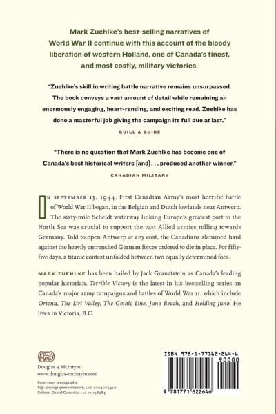 BOOK SIX in the Canadian Battle Series Terrible Victory is a gripping account of Canada's bloody liberation of western Holland, one of our finest, and most costly, military victories. On September 4, 1944, Antwerp, Europe's largest port, fell to the Second British Army and it seemed the war would soon be won. But Antwerp was of little value unless the West Scheldt Estuary linking it to the North Sea was also in Allied hands. In his greatest blunder of the war, Field Marshal Montgomery turned his back on the port, leaving the First Canadian Army to fight its way up the long coastal flank. By the time the Canadians and others serving with them reached the area, it had been transformed into a fortress manned by troops ordered to fight to the death. Crushing the Nazi defenders required all of the Canadians' courage, endurance and skill. The battle that raged until November was Canada's bloodiest of World War II, costing more than 6,000 casualties.