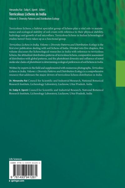 Terricolous Lichens in India, Volume 1: Diversity Patterns and Distribution Ecology is the first ever publication dealing with soil lichens of India. Divided into five chapters, this volume discusses the lichenological researches in India with reference to terricolous lichens, the altitudinal distribution patterns of terricolous lichens, comparative assessment of distribution with global patterns, and the photobiont diversity and influence of novel molecular clades of photobiont in determining ecological preferences of soil lichens in India.