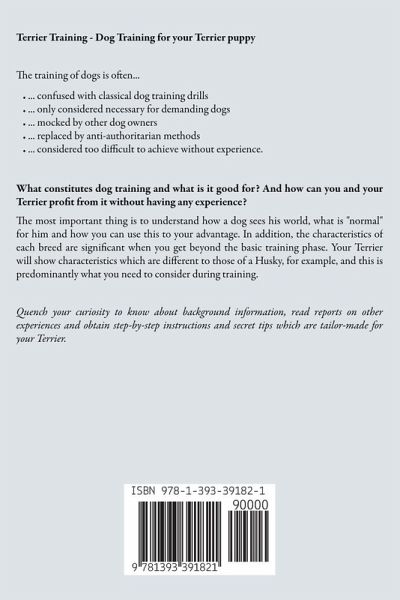 Terrier Training - Dog Training for your Terrier puppy The training of dogs is often...... confused with classical dog training drills ... only considered necessary for demanding dogs ... mocked by other dog owners ... replaced by anti-authoritarian methods ... considered too difficult to achieve without experience. What constitutes dog training and what is it good for? And how can you and your Terrier profit from it without having any experience? The most important thing is to understand how a dog sees his world, what is "normal" for him and how you can use this to your advantage. In addition, the characteristics of each breed are significant when you get beyond the basic training phase. Your Terrier will show characteristics which are different to those of a Husky, for example, and this is predominantly what you need to consider during training. This book is vol. 1 of the Terrier training books. Vol. 2 for your grown up Terrier is also available with the title "Terrier Training Vol. 2: Dog Training for your grown-up Terrier" Author Claudia Kaiser says about her book: "It was my desire to let other dog owners profit from the knowledge I have gained over many years, and after making many mistakes. I love my dog and know how important it is to adapt the training to suit each breed. It is exactly this desire that prompted me to write this book. My aim is to help every beginner, not only to understand his dog better, but also to know exactly how to get the best results, step-by-step, so that you can achieve a close, positive and trusting human-dog relationship." Quench your curiosity to know about background information, read reports on other experiences and obtain step-by-step instructions and secret tips which are tailor-made for your Terrier. Get your copy of this book today and experience...... how your Terrier sees his world ... and how you can progressively train your dog to receive the best results. Your Terrier will appreciate it... ... so this is my advice: Don't hesitate to buy this book! Content of this book:About the Author Preface What you need to know about your Terrier Cornerstones of training puppies Before the puppy arrives The first few weeks The first commands Training basic knowledge Special Chapter - The hunting instinct Check list for the start Conclusion