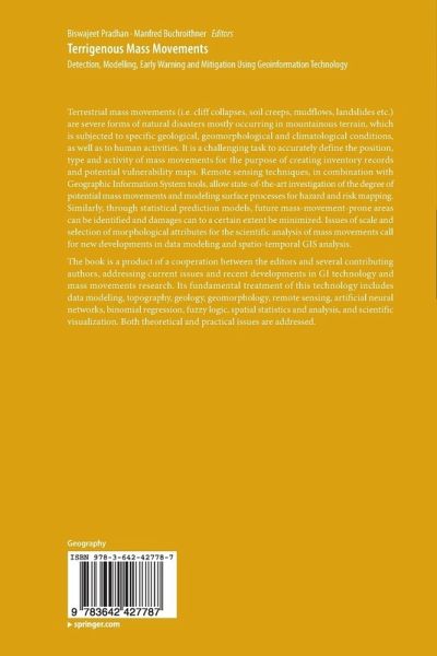 Terrestrial mass movements (i.e. cliff collapses, soil creeps, mudflows, landslides etc.) are severe forms of natural disasters mostly occurring in mountainous terrain, which is subjected to specific geological, geomorphological and climatological conditions, as well as to human activities. It is a challenging task to accurately define the position, type and activity of mass movements for the purpose of creating inventory records and potential vulnerability maps. Remote sensing techniques, in combination with Geographic Information System tools, allow state-of-the-art investigation of the degree of potential mass movements and modeling surface processes for hazard and risk mapping. Similarly, through statistical prediction models, future mass-movement-prone areas can be identified and damages can to a certain extent be minimized. Issues of scale and selection of morphological attributes for the scientific analysis of mass movements call for new developments in data modeling and spatio-temporal GIS analysis.