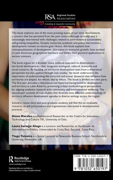 Part 1. Conceptual framework 1. Introduction 2. A brief history of development in Latin America 3. Territory and development in regional studies and Latin American literature 4. Territories and Root-development: Contributions of a popular, decolonial and contra hegemonic research agenda Part 2. Case studies 5. Dependency, food production and territorialization at the borders of capital in Argentina 6. Yerba Mate. TTechnoscientific political arena and territorial development in the Iguaçu Valley, Paraná, southern Brazil 7. Multiple Territorialities in Pampa Del Indio, Argentina from 2011-2021 8. Building biocultural territories in the Solares of the Yucatán Peninsula, Mexico 9. Regional cooperation as local development agendas. Coffee Cultural Landscape in Colombia and Coopeumo, Chile 10. Territorialization of drug dealing in marginalised neighbourhoods of the Costa Rican capital 11: Conclusions. Territories and development in Latin America