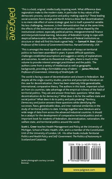 Territory, Democracy and Justice brings together experts from six countries to ask what territorial decentralization does and what it means for democracy, policymaking and the welfare state. Integrated and international in a fragmented field, the chapters identify the importance and consequences of territorial decentralization. The authors analyze the successes, the generalizable ideas, and the international lessons in the study of comparative territorial politics as well as new directions for research.