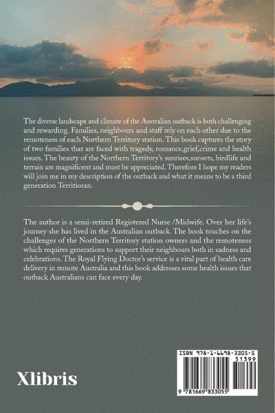 The diverse landscape and climate of the Australian outback is both challenging and rewarding. Families, neighbours and staff rely on each other due to the remoteness of each Northern Territory station. This book captures the story of two families that are faced with tragedy, romance,grief,crime and health issues. The beauty of the Northern Territory's sunrises,sunsets, birdlife and terrain are magnificent and must be appreciated. Therefore I hope my readers will join me in my description of the outback and what it means to be a third generation Territioran.