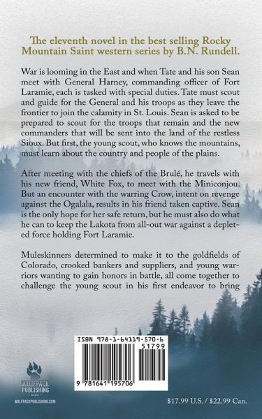 The eleventh novel in the best selling Rocky Mountain Saint western series by B.N. Rundell. War is looming in the East and when Tate and his son Sean meet with General Harney, commanding officer of Fort Laramie, each is tasked with special duties. Tate must scout and guide for the General and his troops as they leave the frontier to join the calamity in St. Louis. Sean is asked to be prepared to scout for the troops that remain and the new commanders that will be sent into the land of the restless Sioux. But first, the young scout, who knows the mountains, must learn about the country and people of the plains. After meeting with the chiefs of the Brulé, he travels with his new friend, White Fox, to meet with the Miniconjou. But an encounter with the warring Crow, intent on revenge against the Ogalala, results in his friend taken captive. Sean is the only hope for her safe return, but he must also do what he can to keep the Lakota from all-out war against a depleted force holding Fort Laramie. Muleskinners determined to make it to the goldfields of Colorado, crooked bankers and suppliers, and young warriors wanting to gain honors in battle, all come together to challenge the young scout in his first endeavor to bring peace to the prairie.