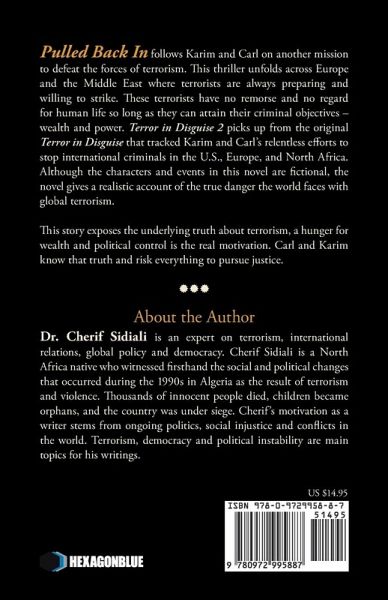 Terror in Disguise 2: Pulled Back In follows Karim and Carl on another mission to defeat the forces of terrorism. This thriller unfolds across Europe and the Middle East where terrorists are always preparing and willing to strike. These terrorists have no remorse and no regards for human life so long as they can attain their criminal objectives - wealth and power. Terror in Disguise 2 picks up from the original Terror in Disguise that tracked Karim and Carl's relentless efforts to stop international criminals in the U.S., Europe, and North Africa. Although the characters and events in this novel are fictional, the novel gives a realistic account of the true danger the world is facing with global terrorism. This story exposes the underlying truth about terrorism, a hunger for wealth and political control is the real motivation. Carl and Karim know that truth and risk everything to pursue justice.¿