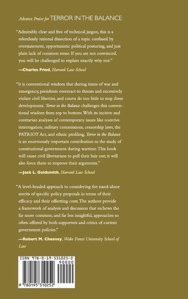 In Terror in the Balance, Posner and Vermeule take on civil libertarians of both the left and the right, arguing that the government should be given wide latitude to adjust policy and liberties in the times of emergency. They emphasize the virtues of unilateral executive actions and argue for making extensive powers available to the executive as warranted. The judiciary should neither second-guess security policy nor interfere on constitutional grounds. In order to protect citizens, government can and should use any legal instrument that is warranted under ordinary cost-benefit analysis. The value gained from the increase in security will exceed the losses from the decrease in liberty. At a time when the 'struggle against violent extremism' dominates the United States' agenda, this important and controversial work will spark discussion in the classroom and intellectual press alike.