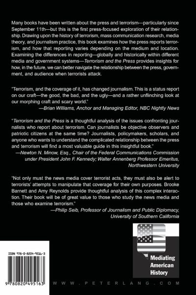 «'Terrorism and the Press' is a thoughtful analysis of the issues confronting journalists who report about terrorism. Can journalists be objective observers and patriotic citizens at the same time? Journalists, policymakers, scholars, and anyone who wants to understand the complicated relationship between the press and terrorism will find a most valuable guide in this insightful book.» (Newton N. Minow, Esq., Chair of the Federal Communications Commission under President John F. Kennedy; Walter Annenberg Professor Emeritus, Northwestern University)