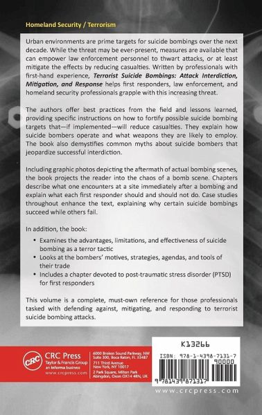 Urban environments are prime targets for suicide bombings over the next decade. Written by professionals with first-hand experience, this volume offers best practices from the field and lessons learned, providing specific instructions on how to fortify possible suicide bombing targets to reduce casualties. It explains how suicide bombers operate and what weapons they are likely to employ and debunks common myths about suicide bombers that jeopardize successful interdiction. With graphic photos depicting the aftermath of actual bombing scenes, the book describes what one encounters at a site immediately after a bombing and explains what each first responder should and should not do. Case studies enhance the text. ¿