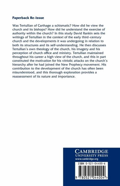 In this study Tertullian's writings are examined in the context of the developing early Church.