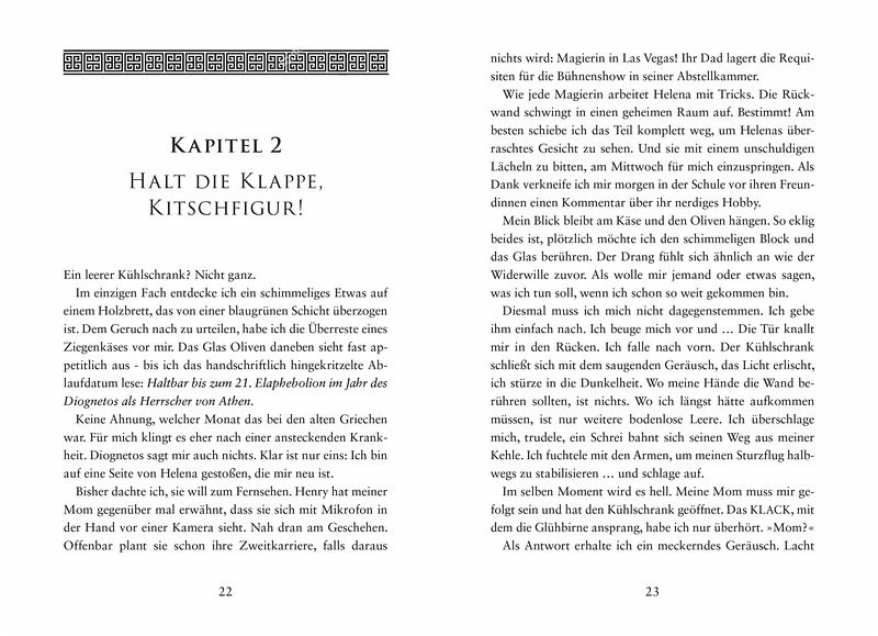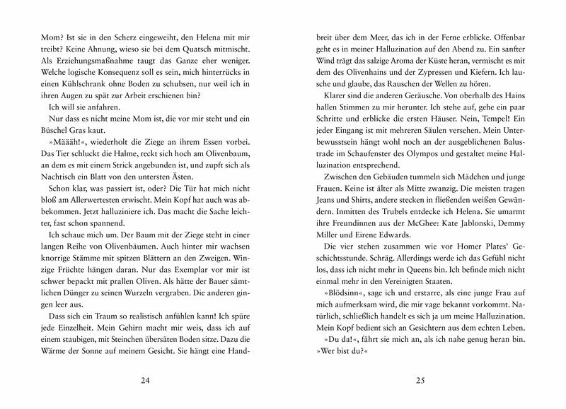 Irgendwie schafft es Tessa Jones nie, im richtigen Moment den Mund zu halten. Muss sie deshalb im Olympos hinten in der Küche stehen? Sie traut ihren Augen nicht, als sie dort beobachtet, wie die schöne Helena einfach in einem Kühlschrank verschwindet. Tessa folgt ihr und findet sich inmitten einem Haufen alter Tempel wieder: im antiken Olymp. Als ihre Mutter endlich mit einem gut gehüteten Familiengeheimnis herausrückt, kann es Tessa kaum fassen. Sie erfährt, dass es nicht nur um ihr eigenes Schicksal geht, sondern gleich das der ganzen mythologischen Götter. Was in aller Unterwelt soll sie jetzt tun?