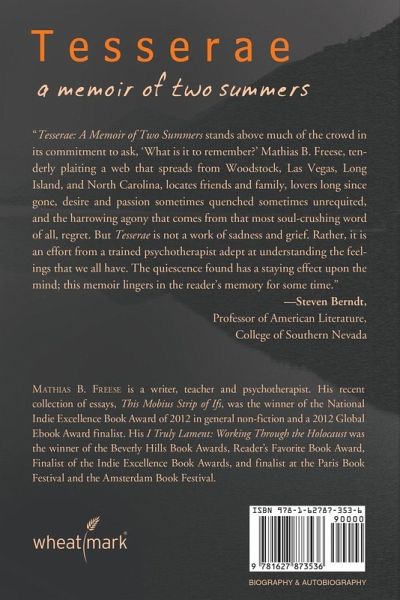 "Tesserae: A Memoir of Two Summers stands above much of the crowd in its commitment to ask, 'What is it to remember?' Mathias B. Freese, tenderly plaiting a web that spreads from Woodstock, Las Vegas, Long Island, and North Carolina, locates friends and family, lovers long since gone, desire and passion sometimes quenched sometimes unrequited, and the harrowing agony that comes from that most soul-crushing word of all, regret. But Tesserae is not a work of sadness and grief. Rather, it is an effort from a trained psychotherapist adept at understanding the feelings that we all have. The quiescence found has a staying effect upon the mind; this memoir lingers in the reader's memory for some time." -- Steven Berndt, Professor of American Literature, College of Southern Nevada
