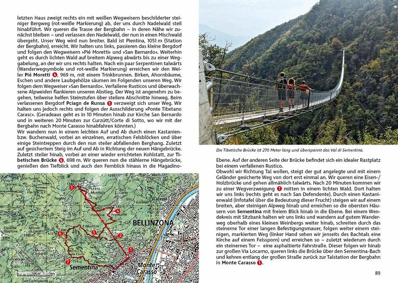 Ausgedehnte Spaziergänge führen entlang der sonnigen Tessiner Seeufer und rund um die charmanten, italienisch geprägten Städtchen Lugano, Bellinzona und Locarno. Wer höher hinaus möchte, wird in den alpinen Regionen belohnt: Panoramareiche Almen und beeindruckende Gipfel bieten unvergessliche Ausblicke. Besondere Highlights sind das Verzascatal und das Maggiatal mit ihren abwechslungsreichen Wandermöglichkeiten sowie die stillen Täler des nördlichen Tessins, darunter das Bavona-, Lavizza- und Bieniotal. Ein absoluter Höhepunkt für Mehrtageswanderer: die dreitägige Hüttentour auf der »Strada alta Leventina«, einer der schönsten Weitwanderwege der Schweiz.
