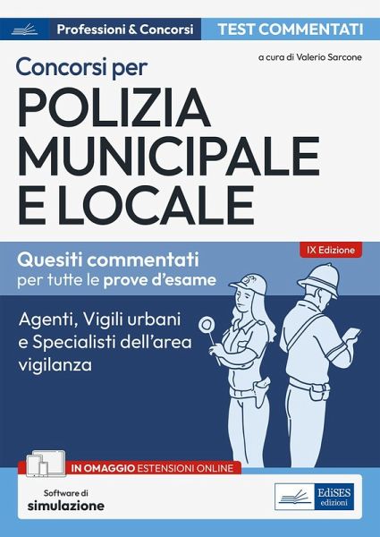 Il volume raccoglie quesiti a risposta multipla e a risposta aperta (con soluzioni ampiamente commentate) utili per una preparazione mirata alle selezioni. I quesiti coprono tutte le materie oggetto delle prove concorsuali (diritto costituzionale, amministrativo, degli enti locali, penale, processuale penale, sistema sanzionatorio amministrativo, normativa sul codice della strada, legislazione di pubblica sicurezza, disciplina del commercio e della somministrazione di alimenti e bevande, disposizioni in tema di polizia urbana, rurale, sanitaria, veterinaria e mortuaria, nonchè norme di polizia edilizia, ambientale e di sicurezza sul lavoro). Das Urheberrecht an bibliographischen und produktbeschreibenden Daten und an den bereitgestellten Bildern liegt bei Informazioni Editoriali, I.E. S.r.l., oder beim Herausgeber oder demjenigen, der die Genehmigung erteilt hat. Alle Rechte vorbehalten.