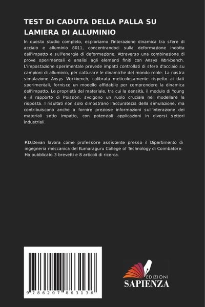 In questo studio completo, esploriamo l'interazione dinamica tra sfere di acciaio e alluminio 8011, concentrandoci sulla deformazione indotta dall'impatto e sull'energia di deformazione. Attraverso una combinazione di prove sperimentali e analisi agli elementi finiti con Ansys Workbench. L'impostazione sperimentale prevede impatti controllati di sfere d'acciaio su campioni di alluminio, per catturare le dinamiche del mondo reale. La nostra simulazione Ansys Workbench, calibrata meticolosamente rispetto ai dati sperimentali, fornisce un modello affidabile per comprendere la dinamica dell'impatto. Le proprietà del materiale, tra cui la densità, il modulo di Young e il rapporto di Poisson, svolgono un ruolo cruciale nel modellare la risposta. I risultati non solo dimostrano l'accuratezza della simulazione, ma contribuiscono anche a fornire preziose informazioni sull'interazione dei materiali sotto impatto, con potenziali applicazioni in diversi settori industriali.