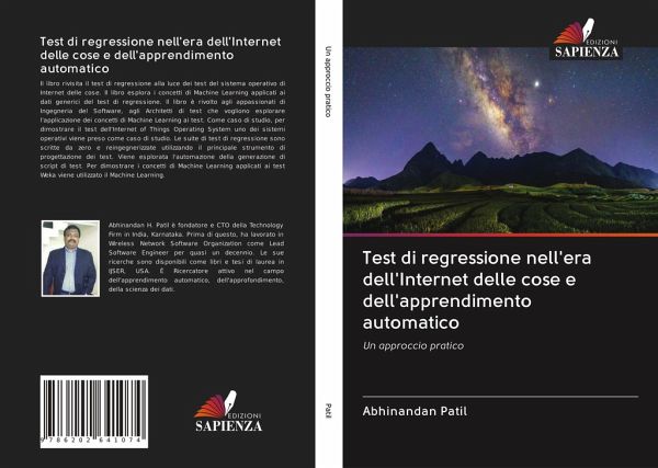 Il libro rivisita il test di regressione alla luce dei test del sistema operativo di Internet delle cose. Il libro esplora i concetti di Machine Learning applicati ai dati generici del test di regressione. Il libro è rivolto agli appassionati di Ingegneria del Software, agli Architetti di test che vogliono esplorare l'applicazione dei concetti di Machine Learning ai test. Come caso di studio, per dimostrare il test dell'Internet of Things Operating System uno dei sistemi operativi viene preso come caso di studio. Le suite di test di regressione sono scritte da zero e reingegnerizzate utilizzando il principale strumento di progettazione dei test. Viene esplorata l'automazione della generazione di script di test. Per dimostrare i concetti di Machine Learning applicati ai test Weka viene utilizzato il Machine Learning.