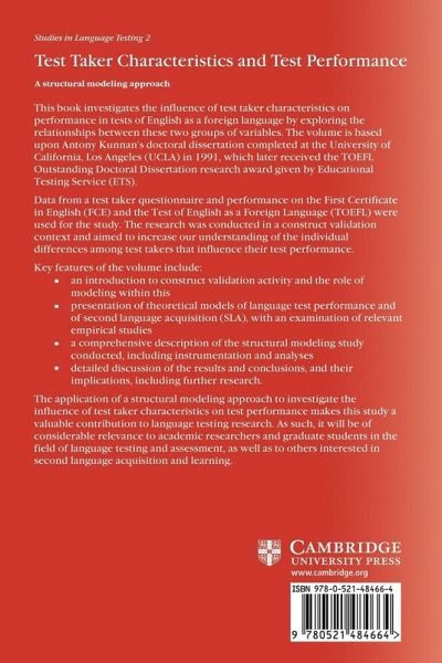This book investigates the influence of test taker characteristics on performance in tests of English as a foreign language by exploring the relationships between these two groups of variables.