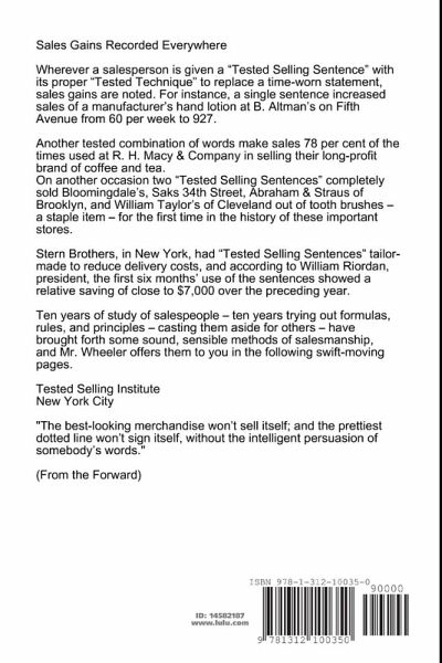 To understand advertising, you need to understand salesmanship. Both are filled with mis-steps, gimmicks, and frauds. Advertising is widely understood to be "Salesmanship in Print." Understanding what makes a successful salesman then gives you the basics of what will make successful ads. With this tested collection of solutions, any person is well on their way to understanding human nature and how to approach prospects in order that marketing becomes routinely effective. During 10 years of research, Wheeler tested over 105,000 words and phrases on more than 19 million people, resulting in the development of his "5 Wheeler Points" and, in 1937, the publication of "Tested Sentences That Sell". Wheeler's principles as powerful today as they were when this book was originally published in 1937. Even as things change, technology transforms, business evolves - human nature has stayed the same. Get your copy today and Master these secrets for yourself.