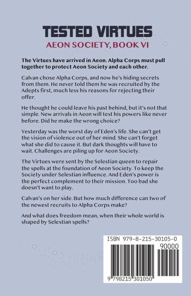 The Virtues have arrived in Aeon. Alpha Corps must pull together to protect Aeon Society and each other. Calvan chose Alpha Corps, and now he's hiding secrets from them. He never told them he was recruited by the Adepts first, much less his reasons for rejecting their offer. He thought he could leave his past behind, but it's not that simple. New arrivals in Aeon will test his powers like never before. Did he make the wrong choice? Yesterday was the worst day of Eden's life. She can't get the vision of violence out of her mind. She can't forget what she did to cause it. But dark thoughts will have to wait. Challenges are piling up for Aeon Society. The Virtues were sent by the Selestian queen to repair the spells at the foundation of Aeon Society. To keep the Society under Selestian influence. And Eden's power is the perfect complement to their mission. Too bad she doesn't want to play. Calvan's on her side. But how much difference can two of the newest recruits to Alpha Corps make? And what does freedom mean, when their whole world is shaped by Selestian spells? ******** Follow Eden and Calvan through the gates and into a whole new world in the final Aeon Society fantasy romance. In Aeon, powers are perilous. Wisdom is scarce. Fear is ever present. But despite the dangers, love still wins.