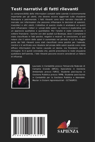 La comprensibilità delle informazioni contabili delle aziende è estremamente importante per gli utenti, che devono essere aggiornati sulla situazione finanziaria e patrimoniale. I fatti rilevanti sono testi narrativi rilasciati al mercato con informazioni che possono influenzare le decisioni di azionisti, investitori e altri utenti. L'obiettivo di questo studio è analizzare se questi testi influenzano i lettori e i prezzi delle azioni. La ricerca è esplorativa con un approccio qualitativo e quantitativo. Per l'analisi è stato selezionato il settore finanziario - banche con dati quotati sul Bovespa, dove il campione è stato classificato in fatti positivi, negativi e neutrali. In conclusione, si può notare che il valore delle azioni è aumentato nel periodo in cui la maggior parte dei fatti rilevanti sono stati classificati come positivi per l'azienda, mentre si è verificata una riduzione del prezzo delle azioni quando sono state diffuse informazioni che hanno causato un danno, sia finanziario che di immagine. Si è quindi constatato che, poiché presentano la reale situazione quotidiana dell'azienda, i fatti rilevanti possono essere considerati un fattore di influenza.