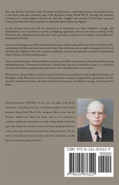 Dive into the heart of history with 'Testimony of a Resistant, ' a captivating narrative that transports you to the heroic and often unknown saga of the Resistance during World War II. Through the authentic testimony of a resistant fighter, discover the daily life, struggles, and sacrifices of these brave men and women who defied the Nazi occupation to defend freedom and human dignity. In this personal story, you will be immersed in a tumultuous era where solidarity, courage, and determination were essential for survival and fighting oppression. Discover the inner workings of the Resistance, the underground networks, the secret operations, and the acts of resistance that marked this dark period of history. As you turn the pages, you will meet anonymous heroes, ordinary men and women who were driven to the extraordinary by their conviction and sense of duty. You will witness the strength of courage in the face of adversity, the solidarity within the resistant community, and the determination to preserve fundamental values of justice, freedom, and fraternity. Delve into the intricacies of this troubled era and let yourself be carried away by the power of this moving and inspiring story. 'Testimony of a Resistant' is much more than just a historical account; it is a deep dive into the soul of these exceptional men and women who risked their lives to save others. This book is a vibrant tribute to all the resistants, both known and unknown, who fought for freedom and the dignity of all. Their story deserves to be heard and to continue to inspire future generations. So dive into this extraordinary human adventure and discover the power of resilience, courage, and the quest for justice.