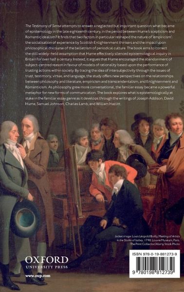 This book offers a new account of the relationship between empiricism and the essay in the late eighteenth and early nineteenth centuries. Exploring topics such as trust, testimony, virtue, and language, it offers new perspectives on connections between philosophy and literature, empiricism and transcendentalism, and Enlightenment and Romanticism.