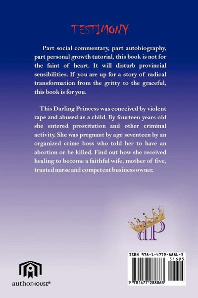 Part social commentary, part autobiography, part personal growth tutorial, this book is not for the faint of heart. It will disturb provincial sensibilities. If you are up for a story of radical transformation; from the gritty to the graceful, this book is for you. This Darling Princess was conceived by violent rape and abused as a child. By fourteen years old she entered prostitution and other criminal activity. She was pregnant by age seventeen by an organized crime boss and told to have an abortion or be killed. Find out how she became a faithful wife, mother of five, trusted nurse and competent business owner.