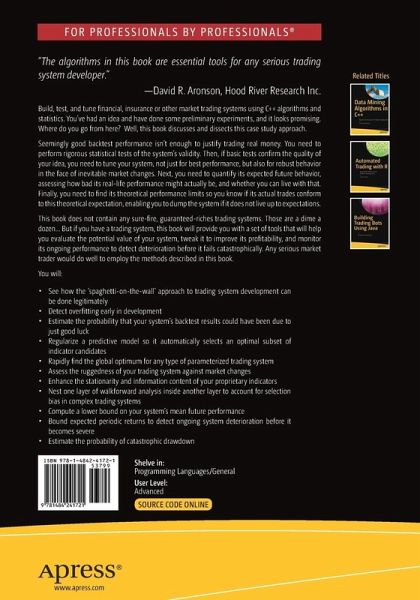 Build, test, and tune financial, insurance or other market trading systems using C++ algorithms and statistics. You've had an idea and have done some preliminary experiments, and it looks promising. Where do you go from here? Well, this book discusses and dissects this case study approach.