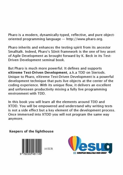 Pharo is a modern, dynamically-typed, reflective, and pure object-oriented programming language - http://www.pharo.org. Pharo inherits and enhances the testing spirit from its ancestor Smalltalk. Indeed, Pharo's SUnit framework is the one of key asset of Agile Development as brought forward by K. Beck in its Test-Driven Development seminal book.But Pharo is much more powerful. It defines and supports eXtreme Test-Driven Development, a.k.a TDD on Steriods. Unique to Pharo, eXtreme Test-Driven Development is a powerful development technique that puts live objects at the center of the coding experience. With its unique flow, it delivers an excellent and unforeseen productivity mixing a fully live programming environment with TDD.In this book you will learn all the elements around TDD and XTDD. You will be empowered and understand why writing tests is not a side effect but a key element of the development process.Once immersed into XTDD you will not program the same way anymore.