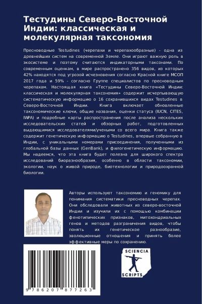 Presnowodnye Testudines (cherepahi i cherepahoobraznye) - odna iz drewnejshih sistem na sowremennoj Zemle. Oni igraüt wazhnuü rol' w äkosisteme i poätomu schitaütsq indikatornymi taxonami. Po sowremennym ocenkam, w mire rasprostraneno 356 widow, iz kotoryh 42% nahodqtsq pod ugrozoj ischeznoweniq soglasno Krasnoj knige MSOP 2017 goda i 59% - soglasno Gruppe specialistow po presnowodnym cherepaham. Nastoqschaq kniga «Testudiny Sewero-Vostochnoj Indii: klassicheskaq i molekulqrnaq taxonomiq» soderzhit ischerpywaüschuü sistematicheskuü informaciü o 16 sohraniwshihsq widah Testudines w Sewero-Vostochnoj Indii. Kniga wklüchaet obnowlennye taxonomicheskie klüchi, obschie nazwaniq, ocenki statusa (IUCN, CITES, IWPA) i podrobnye karty rasprostraneniq posle analiza neskol'kih issledowatel'skih statej i obzornyh rabot, podgotowlennyh wydaüschimisq issledowatelqmi/uchenymi so wsego mira. Kniga takzhe soderzhit geneticheskuü informaciü o Testudines, wperwye sobrannuü w Indii, s unikal'nymi nomerami prisoedineniq, poluchennymi iz global'noj bazy dannyh (GenBank), i filogeneticheskuü informaciü. My nadeemsq, chto äta kniga budet polezna dlq shirokogo spektra issledowanij bioraznoobraziq, osobenno w oblasti taxonomii, äkologii, nauk o zhiwoj prirode, biotehnologii i prirodoohrannoj biologii.