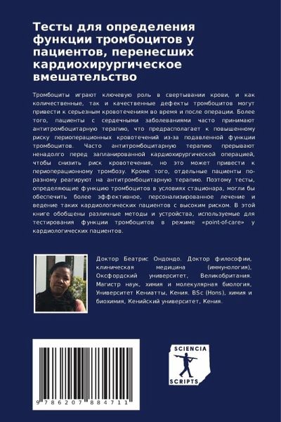 Trombocity igraüt klüchewuü rol' w swertywanii krowi, i kak kolichestwennye, tak i kachestwennye defekty trombocitow mogut priwesti k ser'eznym krowotecheniqm wo wremq i posle operacii. Bolee togo, pacienty s serdechnymi zabolewaniqmi chasto prinimaüt antitrombocitarnuü terapiü, chto predraspolagaet k powyshennomu risku perioperacionnyh krowotechenij iz-za podawlennoj funkcii trombocitow. Chasto antitrombocitarnuü terapiü prerywaüt nenadolgo pered zaplanirowannoj kardiohirurgicheskoj operaciej, chtoby snizit' risk krowotecheniq, no äto mozhet priwesti k perioperacionnomu trombozu. Krome togo, otdel'nye pacienty po-raznomu reagiruüt na antitrombocitarnuü terapiü. Poätomu testy, opredelqüschie funkciü trombocitow w uslowiqh stacionara, mogli by obespechit' bolee äffektiwnoe, personalizirowannoe lechenie i wedenie takih kardiologicheskih pacientow s wysokim riskom. V ätoj knige obobscheny razlichnye metody i ustrojstwa, ispol'zuemye dlq testirowaniq funkcii trombocitow w rezhime «point-of-care» u kardiologicheskih pacientow.