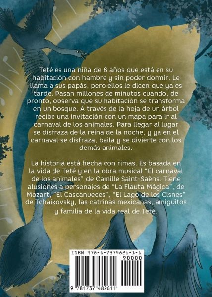 Teté es una niña de 6 años que está en su habitación con hambre y sin poder dormir. Le llama a sus papás, pero ellos le dicen que ya es tarde. Pasan millones de minutos cuando, de pronto, observa que su habitación se transforma en un bosque. A través de la hoja de un árbol recibe una invitación con un mapa para ir al carnaval de los animales. Para llegar al lugar se disfraza de la reina de la noche, y ya en el carnaval se disfraza, baila y se divierte con los demás animales. La historia está hecha con rimas. Es basada en la vida de Teté y en la obra musical "El carnaval de los animales" de Camille Saint-Saëns. Tiene alusiones a personajes de "La Flauta Mágica", de Mozart, "El Cascanueces", "El Lago de los Cisnes" de Tchaikovsky, las catrinas mexicanas, amiguitos y familia de la vida real de Teté.