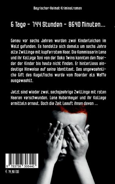 Genau vor sechs Jahren wurden zwei Kinderleichen im Wald gefunden. Es handelte sich damals um sechs Jahre alte Zwillinge mit kupferrotem Haar. Die Komissarin Lena und ihr Kollege Toni von der Soko Twins konnten den Mörder der Kinder bis heute nicht finden. Er hinterließ eindeutige Hinweise auf seine Identität. Das ungewöhnliche Gift des Kugelfischs wurde vom Mörder als Waffe ausgewählt,Jetzt sind wieder zwei, sechsjährige Zwillinge mit roten Haaren verschwunden. Lena Hubermayer und ihr Kollege ermitteln erneut. Doch die Zeit läuft ihnen davon...