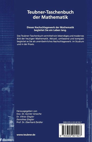 Das Teubner-Taschenbuch der Mathematik erfüllt aktuell, umfassend und kompakt alle Erwartungen, die an ein mathematisches Nachschlagewerk gestellt werden. Es vermittelt ein lebendiges und modernes Bild der heutigen Mathematik. Als Handbuch begleitet es die Studierenden vom ersten Semester an und der Praktiker nutzt es als unentbehrliches Nachschlagewerk. Der Teil II dieses erfolgreichen Werkes behandelt die vielfältigen