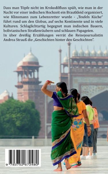 Dass man Töpfe nicht im Fluss mit Krokodilen spült, wie man in der Nacht vor einer indischen Hochzeit ein Brautkleid organisiert, wie Jürgen Klinsmann zum Lebensretter wurde und wofür Omas alte Eisenzange gut ist. "Teufels Küche" führt rund um den Globus, auf sechs Kontinente und in viele Kulturen. Schlaglichtartig begegnet man indischen Bauern, charmanten Ausreißern, bolivianischen Straßenräubern und schlauen Papageien.In über dreißig Erzählungen verrät die Reisejournalistin Andrea Strauß die "Geschichten hinter den Geschichten".
