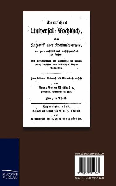 Das zweibändige "Teutsche Universal-Kochbuch oder Inbegriff aller Kochkunstvortheile, um gut, wohlfeil und wohlschmeckend zu kochen" war lange Zeit das Standardwerk in den Haushalten. Nachdruck der Originalsausgabe von 1822.