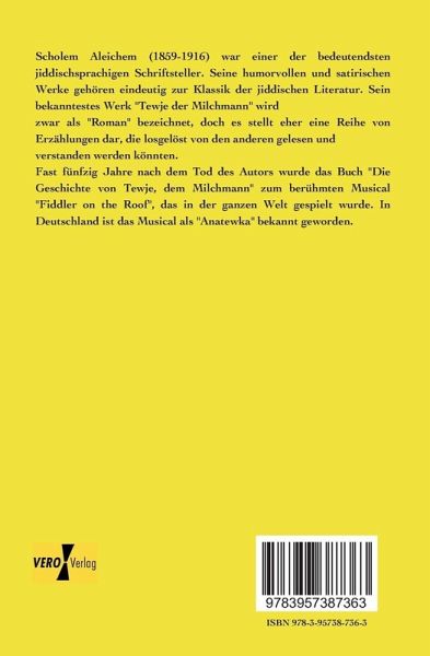 Scholem Aleichem (1859-1916) war einer der bedeutendsten jiddischsprachigen Schriftsteller. Seine humorvollen und satirischen Werke gehören eindeutig zur Klassik der jiddischen Literatur. Sein bekanntestes Werk "Tewje der Milchmann" wird