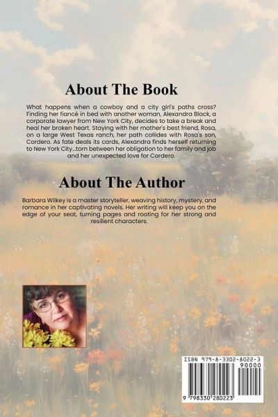 What happens when a cowboy and a city girl's paths cross? Finding her fiancé in bed with another woman, Alexandra Black, a corporate lawyer from New York City, decides to take a break and heal her broken heart. Staying with her mother's best friend, Rosa, on a large West Texas ranch, her path collides with Rosa's son, Cordero. As fate deals its cards, Alexandra finds herself returning to New York City...torn between her obligation to her family and job and her unexpected love for Cordero.