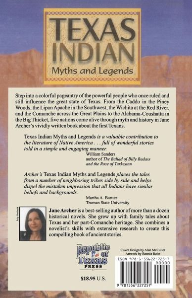 Step into a colorful pageantry of the powerful people who once ruled and still influence the great state of Texas. From the Caddo in the Piney Woods, the Lipan Apache in the Southwest, the Wichita at the Red River, and the Comanche across the Great Plains to the Alabama-Coushatta in the Big Thicket, five nations come alive through myth and history in Jane Archer's vividly written book about the first Texans.