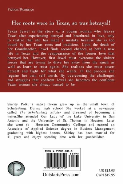 Her roots were in Texas, so was betrayal! Texas Jewel is the story of a young woman who leaves Texas after experiencing betrayal and heartbreak in love, only to realize that she has made a mistake because she is too bound by her Texas roots and traditions. Upon the death of her Grandmother, Jewel finds second chances at both a new life in Texas and the reappearance of the former love that betrayed her. However, first Jewel must overcome the sinister forces that are trying to drive her away from the ranch as well as learn to trust again. She realizes she must assert herself and fight for what she wants. In the process she regains her own self worth. By overcoming the challenges and struggles that confront Jewel she becomes the confident Texas woman she always wanted to be.
